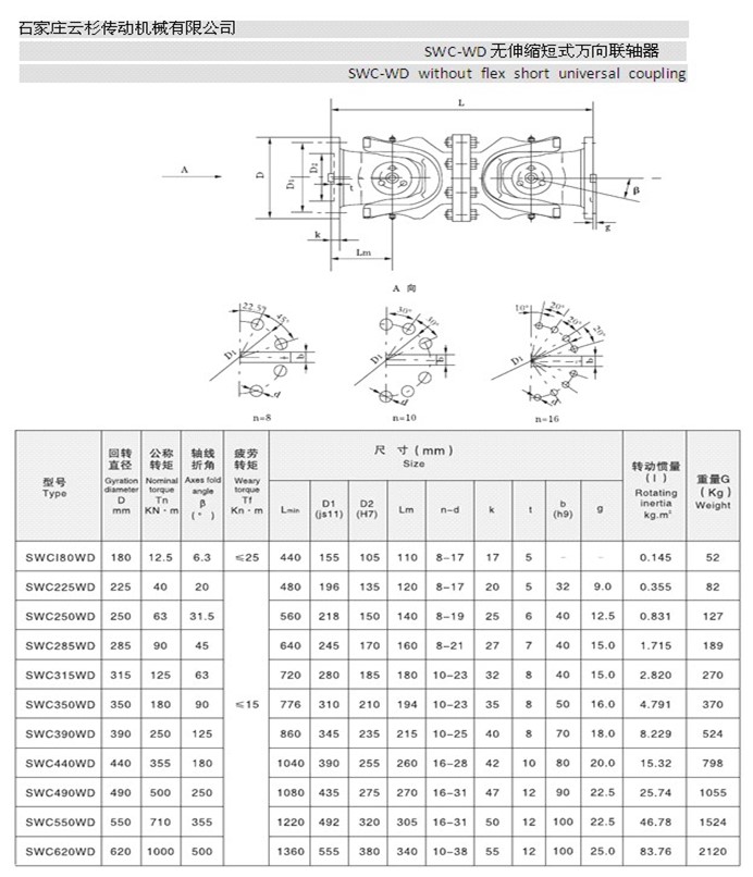 THÔNG SỐ CỦA CHỦNG LOẠI CARDAN SWC-WD (Without Flex Short Universal Coupling)