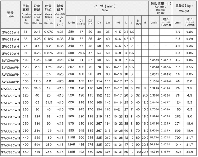 THÔNG SỐ CỦA CHỦNG LOẠI TRỤC CARDAN SWC-WH (Without Flex Welding Type Universal Coupling)