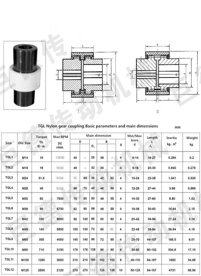 THÔNG SỐ KỸ THUẬT CỦA TGL NYLON GEAR COUPLING